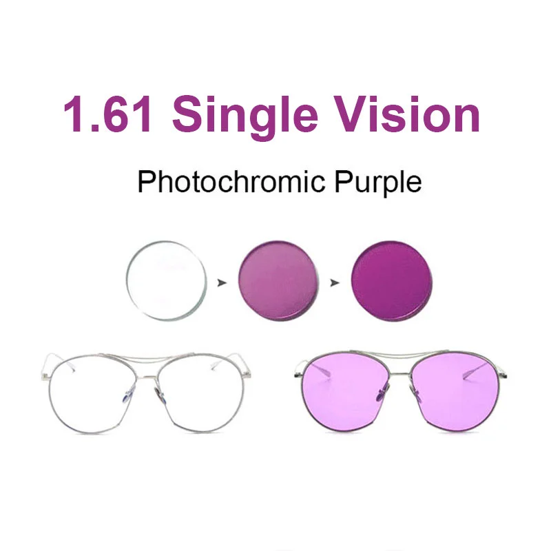 1.61 Photochromic Pink or Blue or Purple Single Vision Lens SPH Range -8.00~+6.00 Max CLY -6.00 Optical Lenses for Eyewear